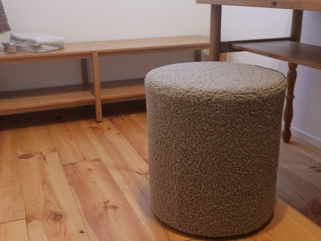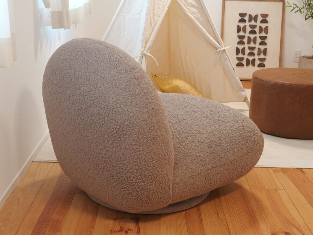 今回のアートワークのメインに採用した、モコモコとしたフォルムが可愛らしいソファ。