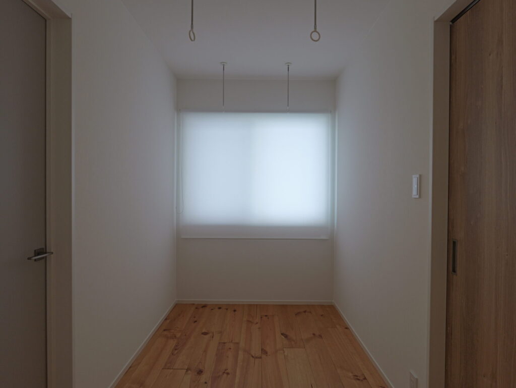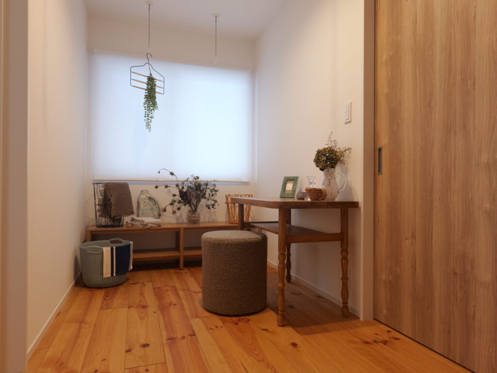 2階のユーティリティスペースでは、洗濯物を干すのはもちろんのこと、オープンボードにグリーンを置けば、サンルームのようにも使えます。
