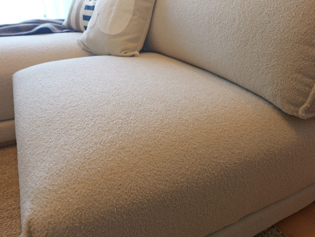 雲のようにやわらかなブークレに包まれて、家族の時間を受けとめるソファ。