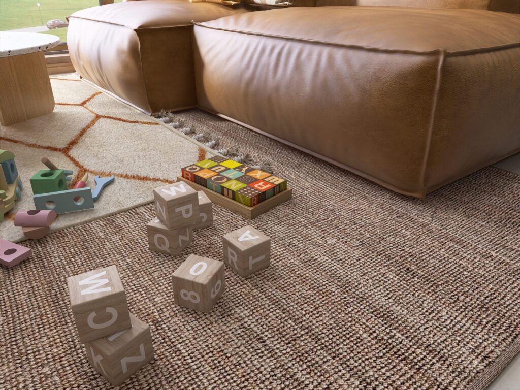 その下のウールのラグには、毎日おもちゃが散乱していた。