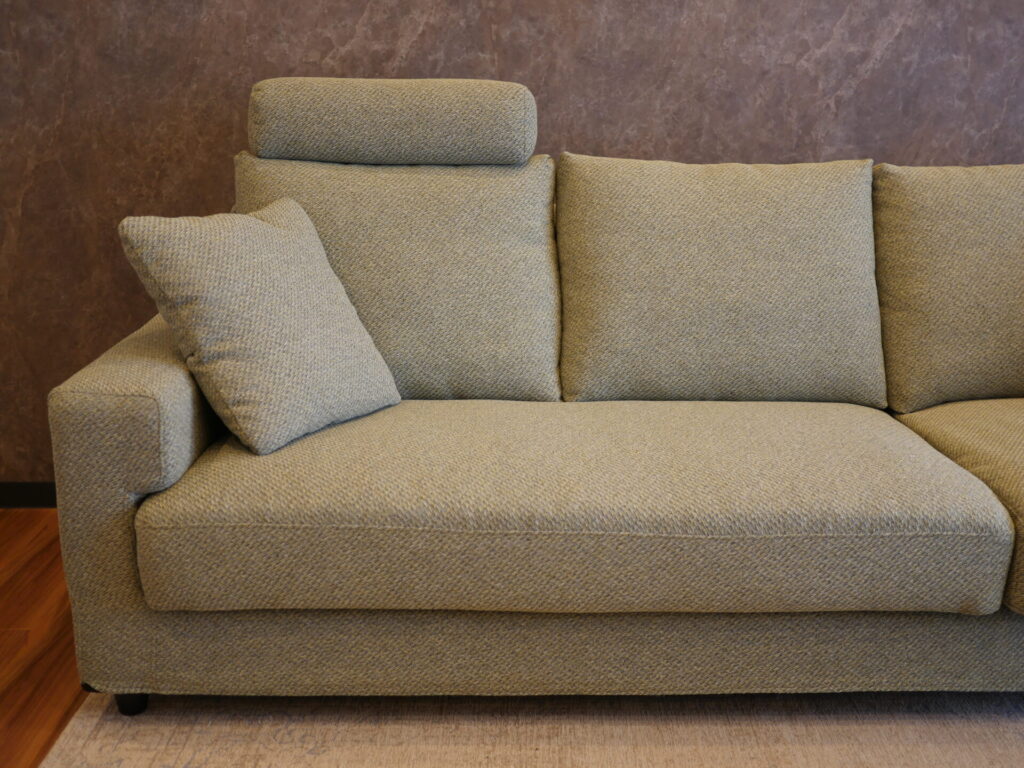 装飾はなくシンプルな作りですが、快適性と実用性を備えたソファです。