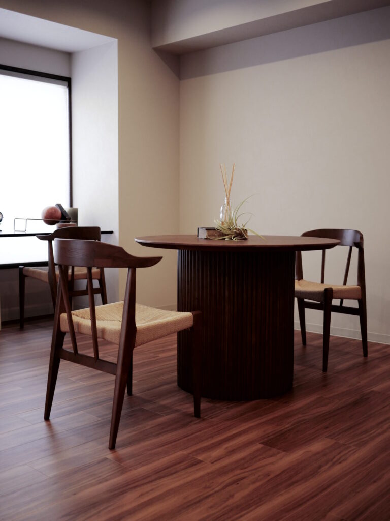 円形テーブルは、空間を柔らかくしてくれます。