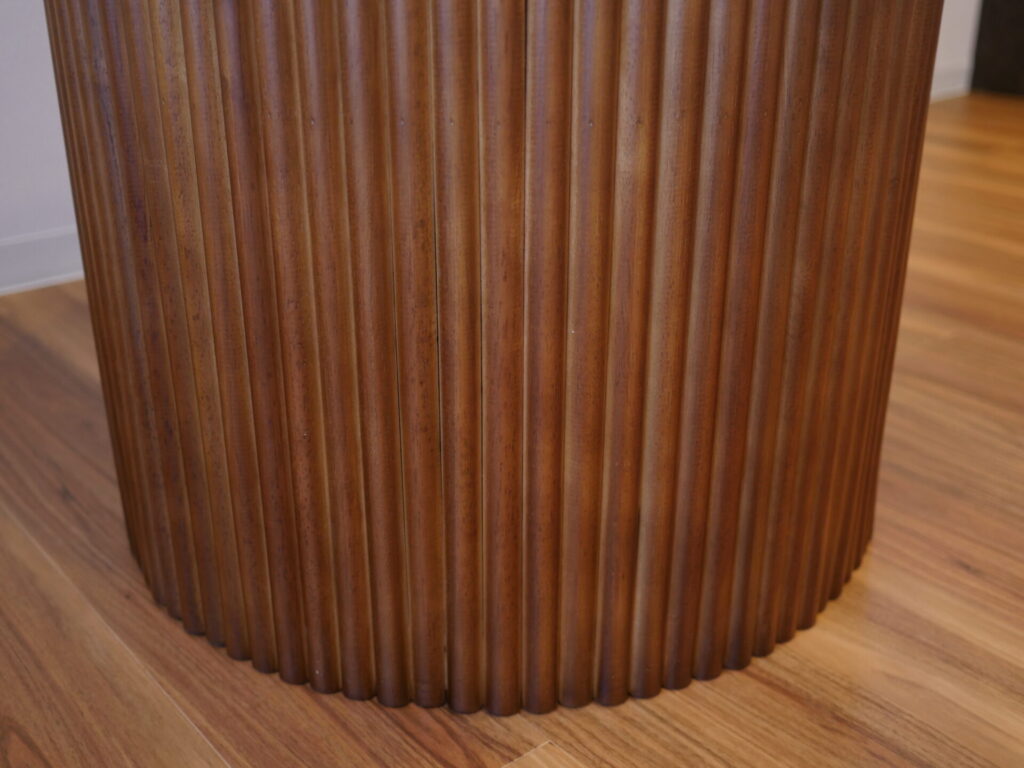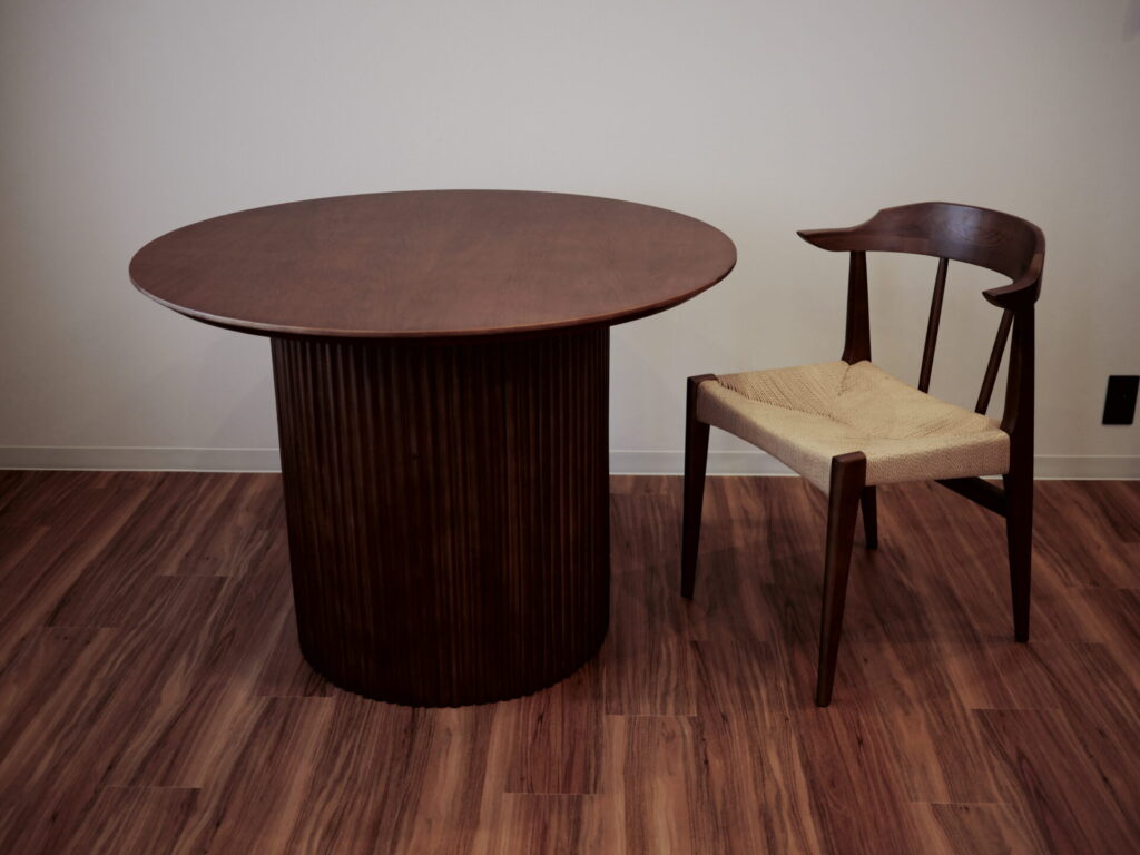 木の美しさが際立つ、クラシカルなデザインのリブ脚(縦溝のデザイン)は、とても重厚な雰囲気を纏っています。