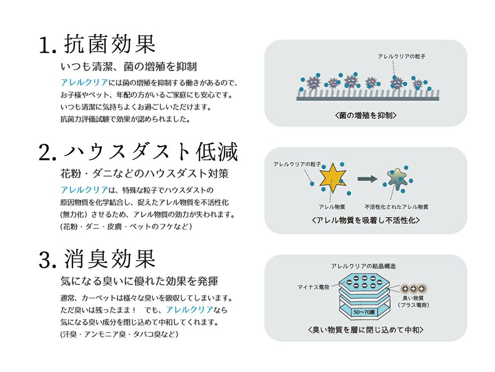 消臭・抗菌効果・ハウスダスト低減などの効果があります。
