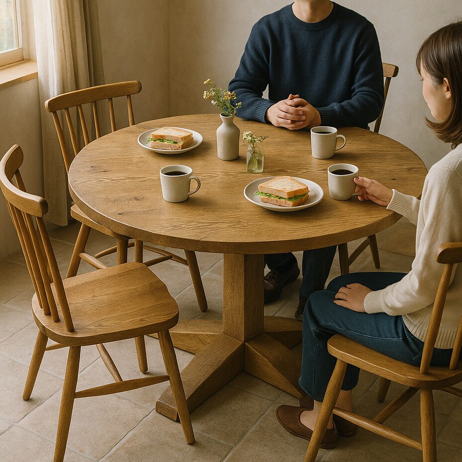 春のやわらかな風が窓から吹き込み、カーテンをゆっくり揺らしていた。 この家に引っ越してからちょうど一年。 最初は段ボールだらけで落ち着かなかった部屋も今では家具が馴染み、家族の気配が染み込んだ空間になっていた。 リビングの中央に置かれたテーブルのまわりにはウィンザーチェアが並んでいる。 引っ越した当初に選んだその椅子は、一年という時間を経てもなお変わらぬ端正さを保ちつつ家族の暮らしに自然に溶け込んでいた。 背もたれの滑らかな弓の曲線は、腰を下ろすたびに安心感を与えダイニン…