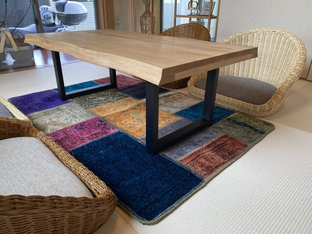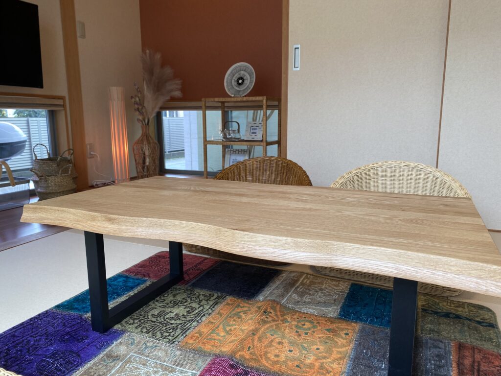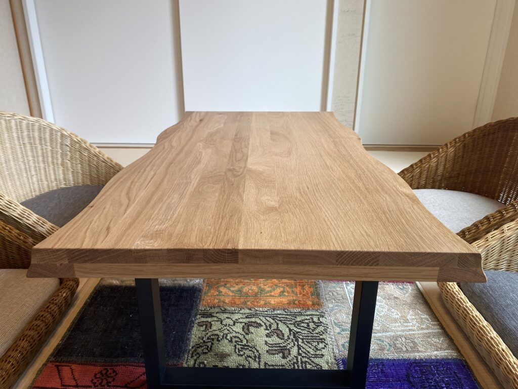 テーブルは天然木 “オーク無垢材” で、自然な仕上がりが特徴です。