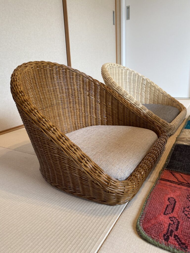 ラタン(籐)の座椅子はアジアのリゾートの空気を入れてくれます。