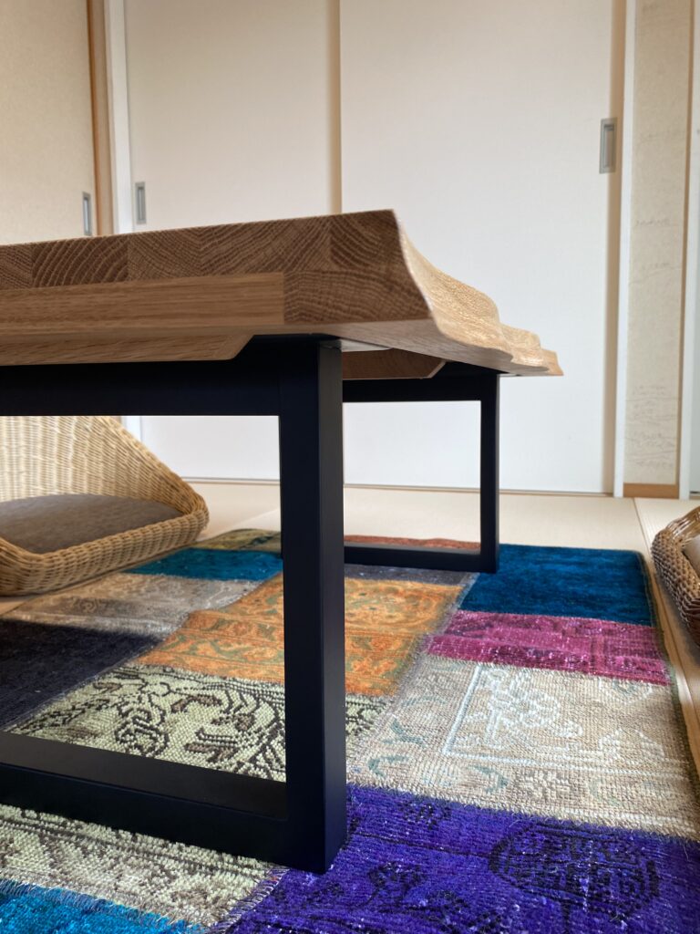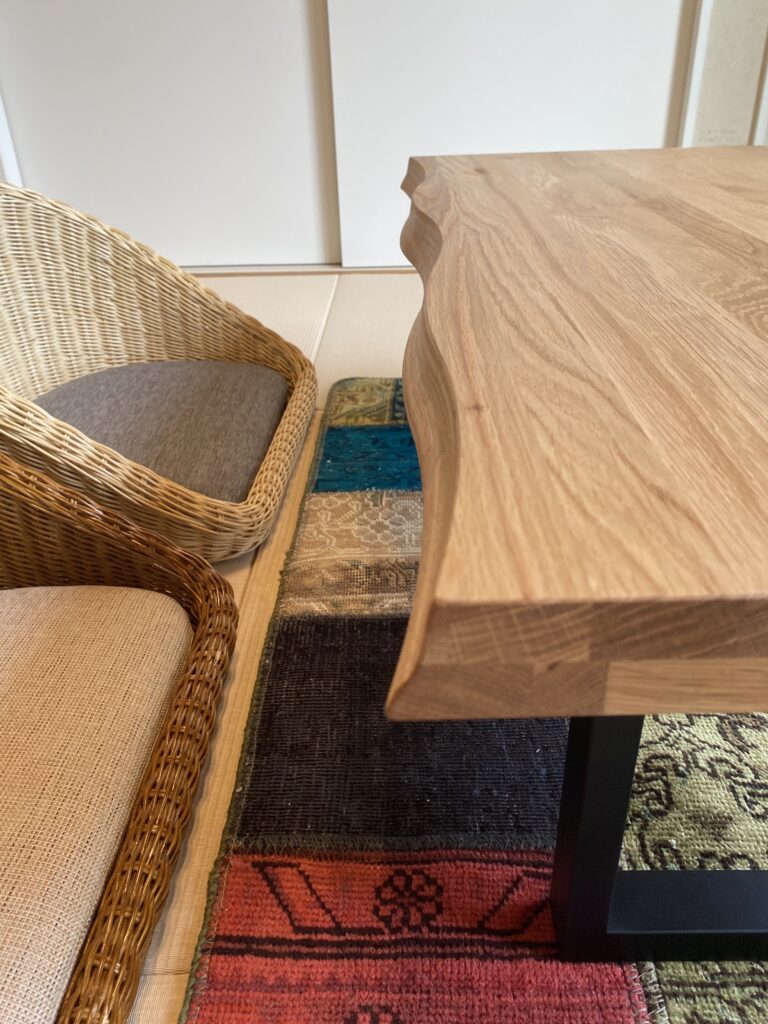 天板の側面が耳付き(並々に加工されている)仕様になっており、自然の温かみがプラスされた空間になっております。