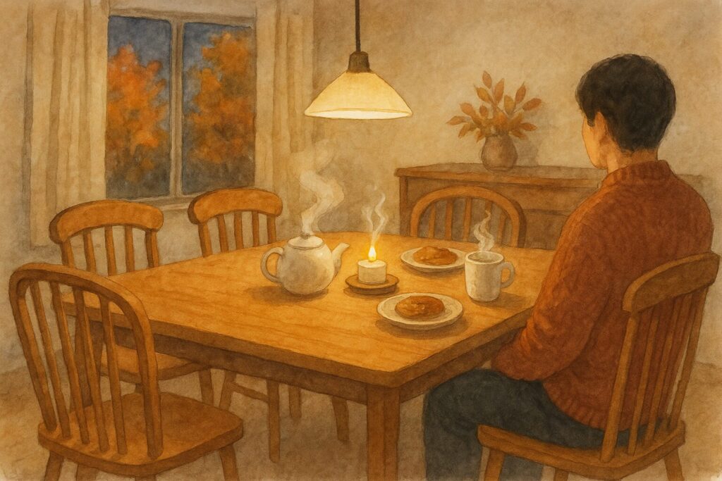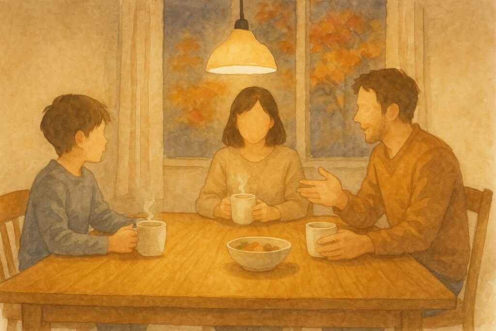 ある秋の夜、夕食を終えたあとも、家族はなかなか席を立とうとしませんでした。窓の外には虫の声。少し肌寒い空気を感じながら、温かいお茶をすすり、子どもが学校であったことを話し、夫婦はとりとめもない会話を続ける。