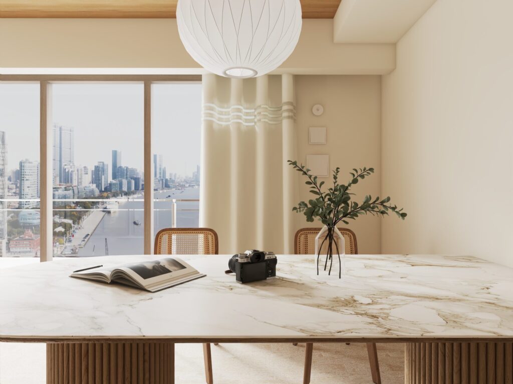 この部屋を選んだのは、窓の向こうに広がる街の景色がガラス越しに眺めるアートのように見えたから。