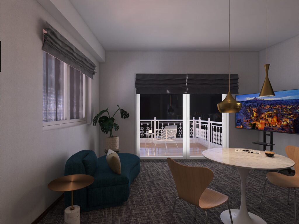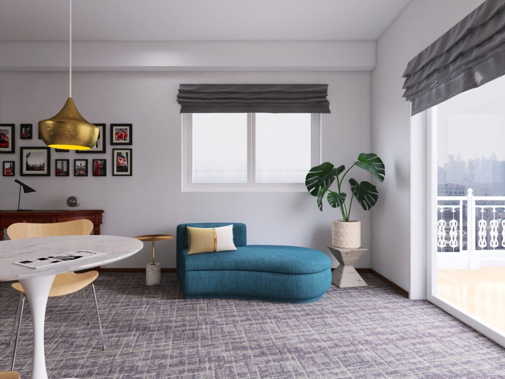 ブルーという色はロンドンの街並みにも多く見られる色合いで、空間全体を引き締めつつ、アクセントとして働きます。家具そのものが「日常の舞台」となり、時間帯やシーンに応じて多彩な表情を見せる存在です。