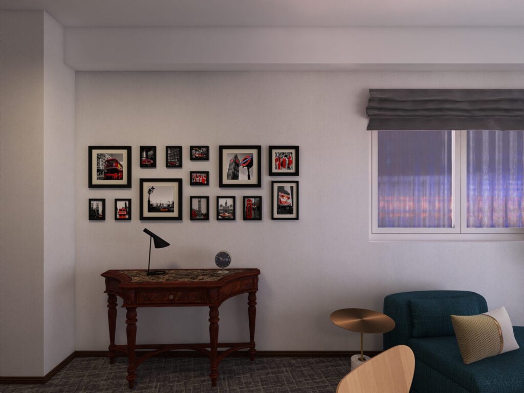 壁にはロンドンの街並みや旅行で撮影された写真をアートとして飾りました。思い出を日常に重ねることで、暮らしそのものがアルバムの1ページとなります。アートは空間に深みを加え、在宅ワーク中の奥さまにとっても気分転換になる役割を果たします。