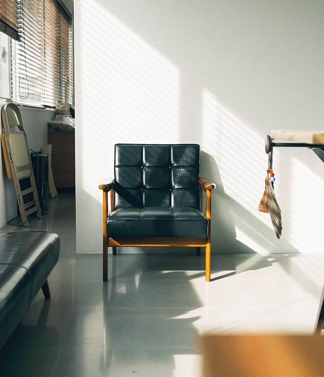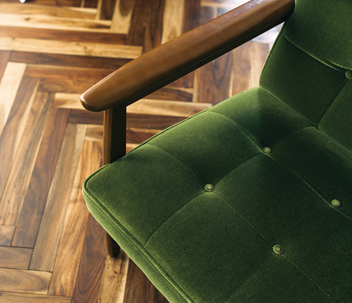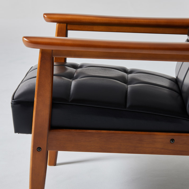 直線的なラインの中に、肘掛けの丸みや背もたれの角度など、人がくつろぐための細やかな工夫が隠されています。