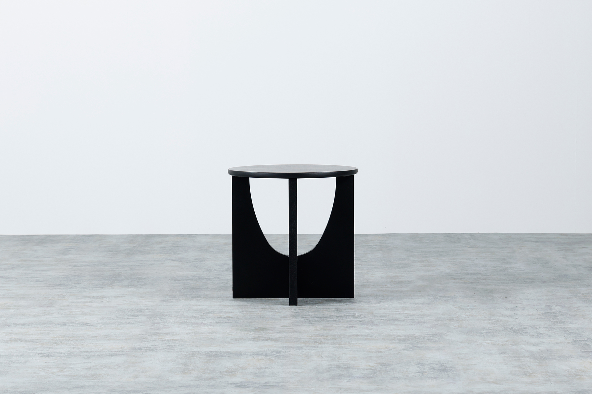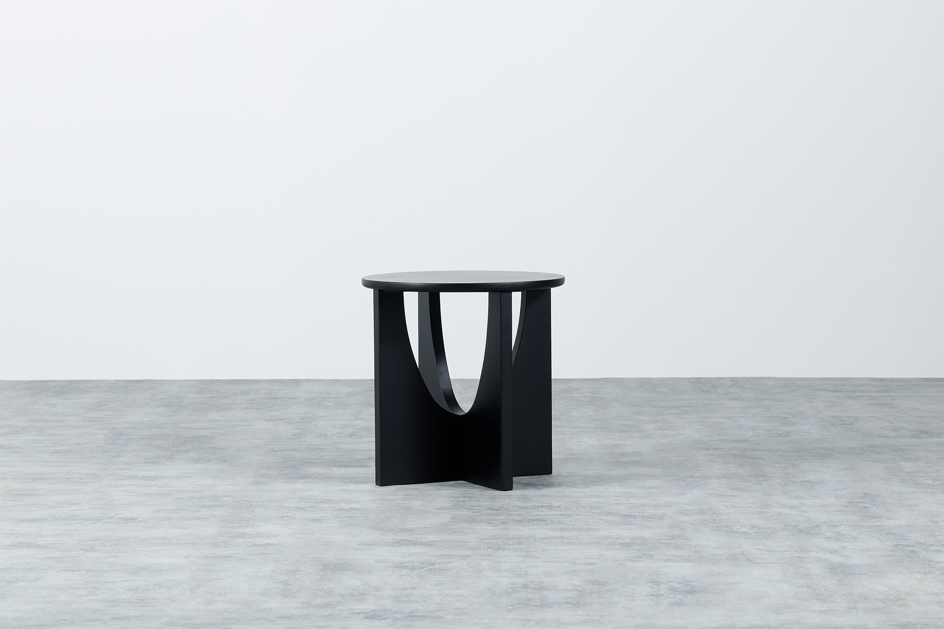 曲線と直線が美しく調和した、シンプルながら存在感のあるラウンドテーブル。