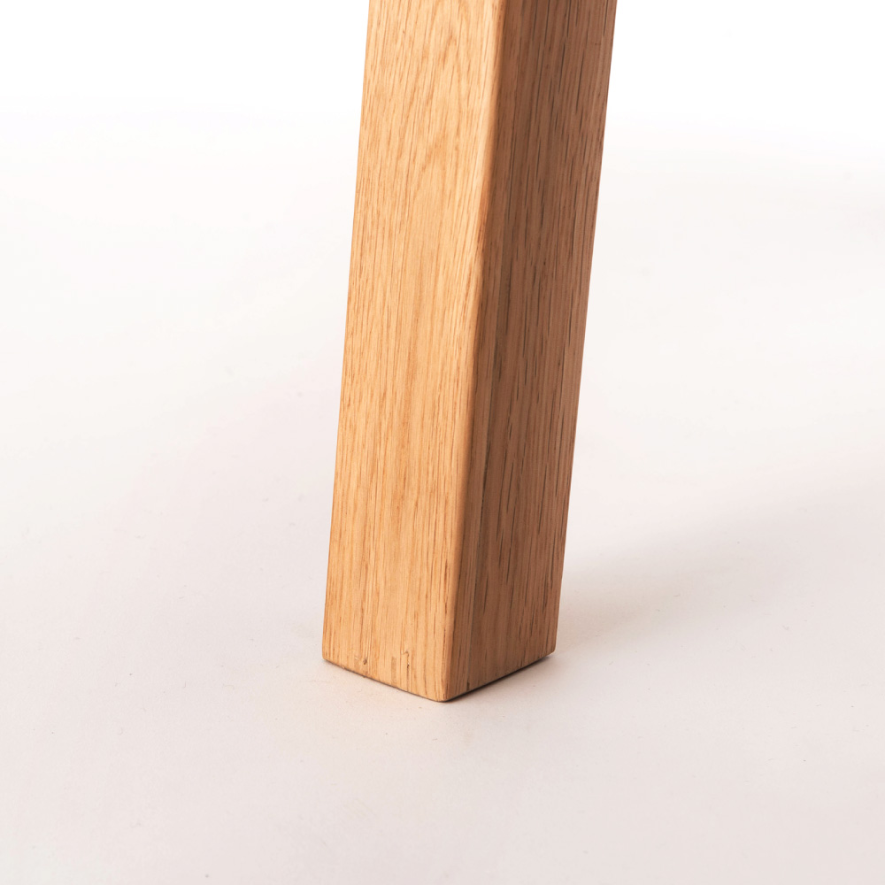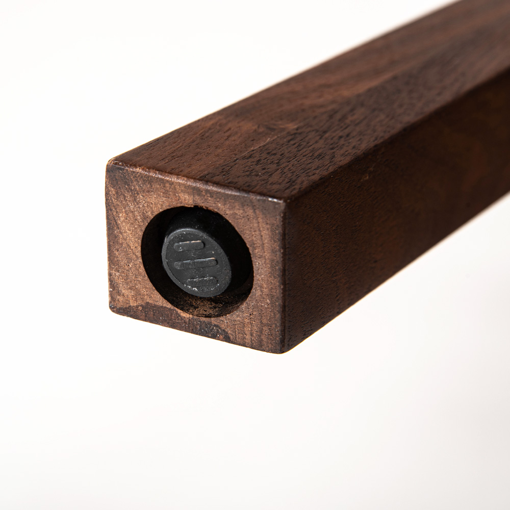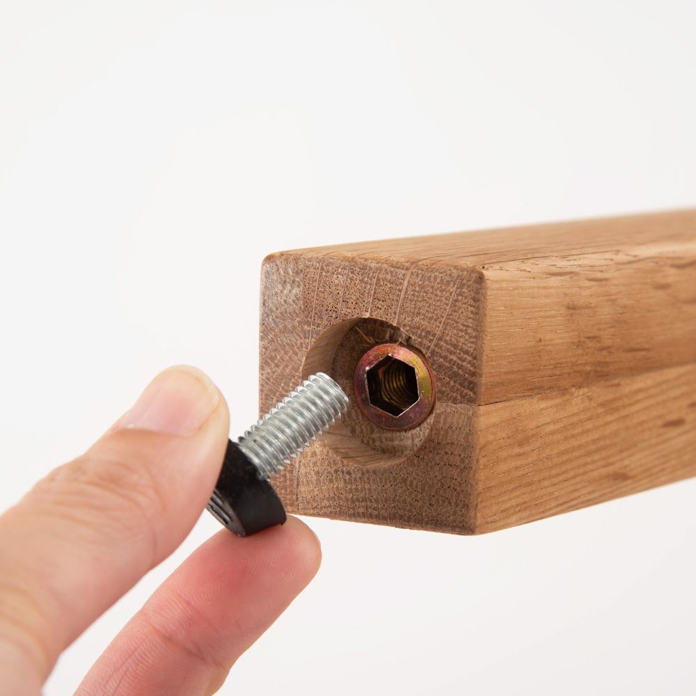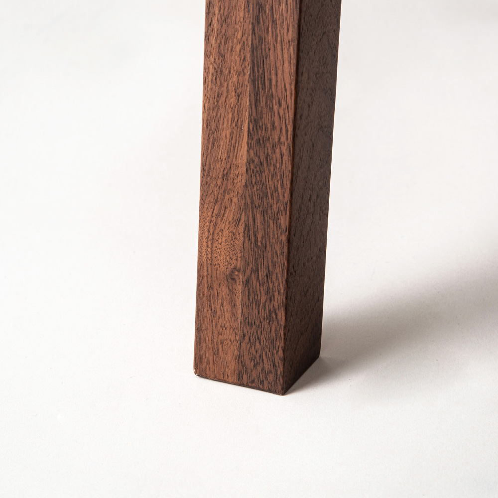 天板は木目の向きを変えて貼り合わせた矢張りデザインで、側面に施した真鍮がアクセントになっています。引き出しなどの収納はあえて省き、さりげなく棚板を設け、ちょっとした収納にも対応しています。インテリアに馴染みやすい2色展開です。
