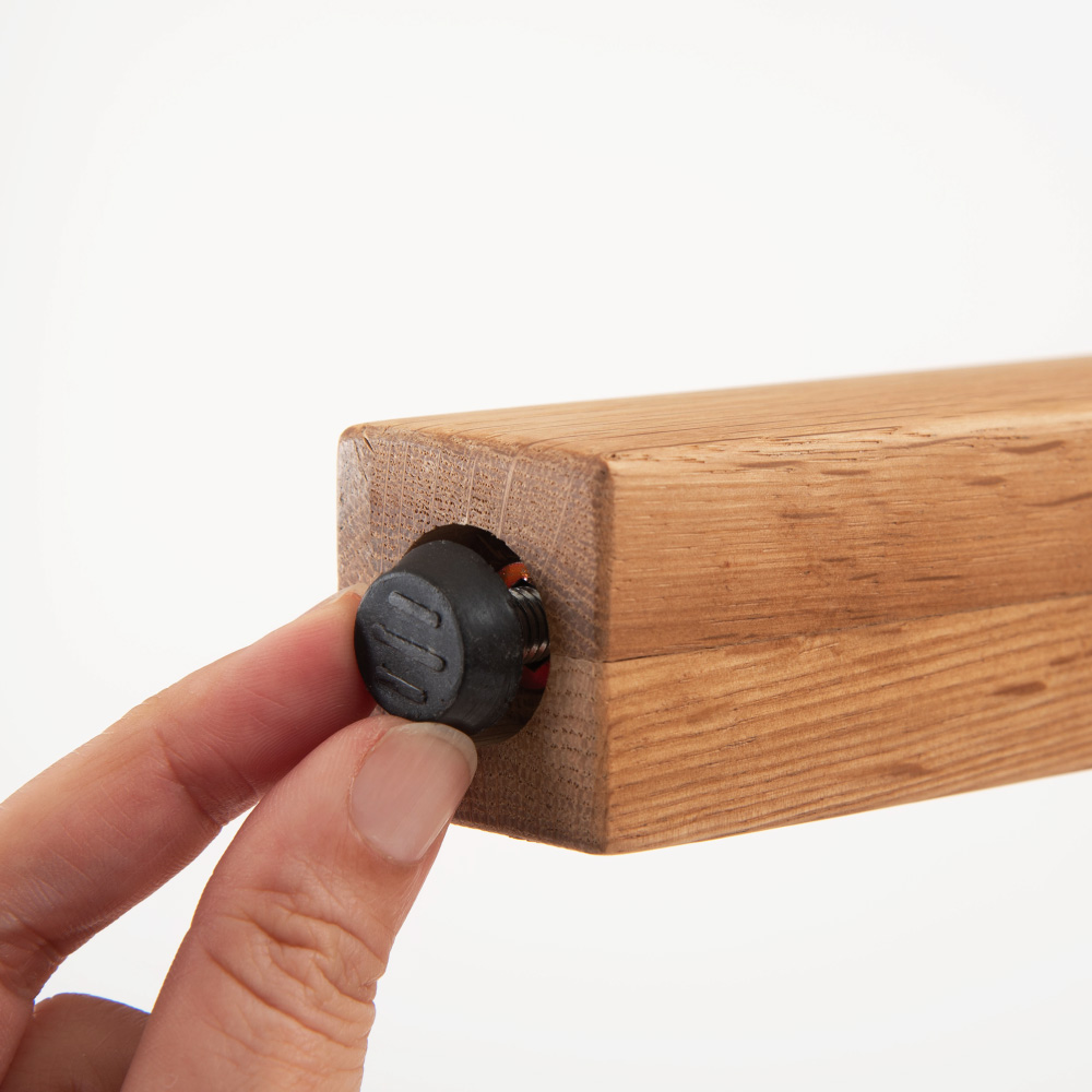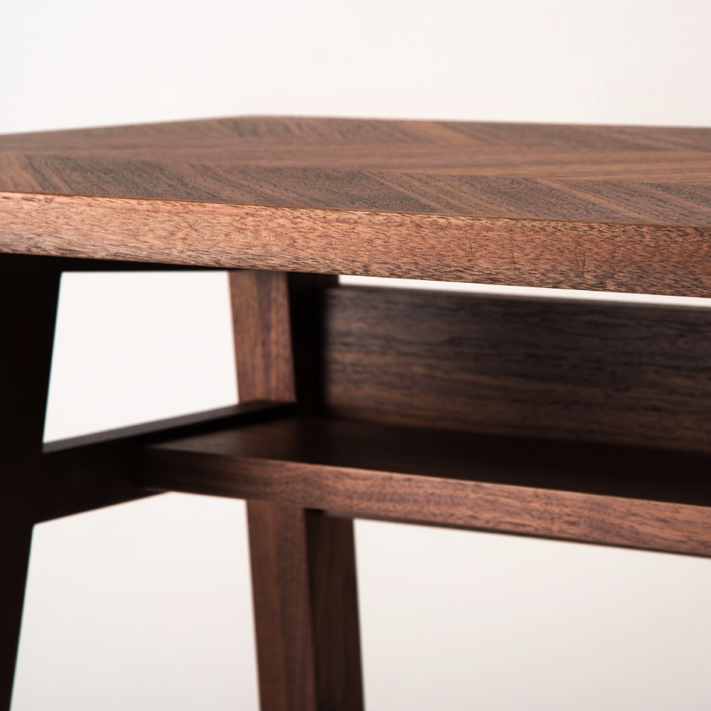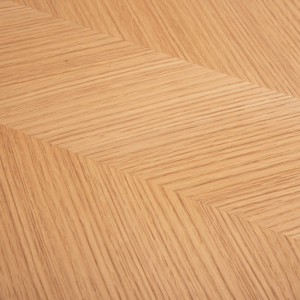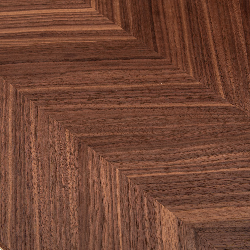 ヘリンボーン模様の天板は、木目が少しずつ方向を変えながら組み合わされてできている。