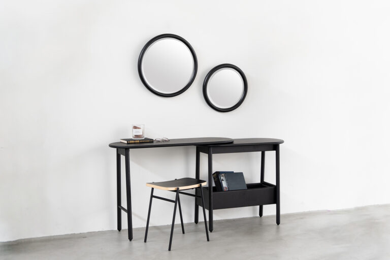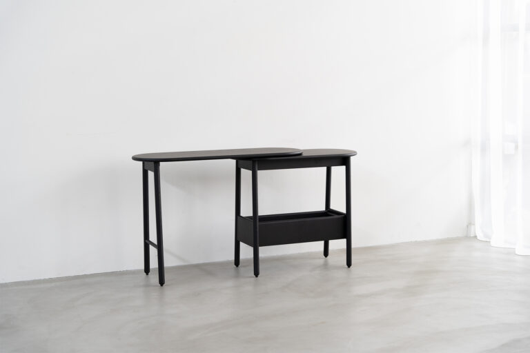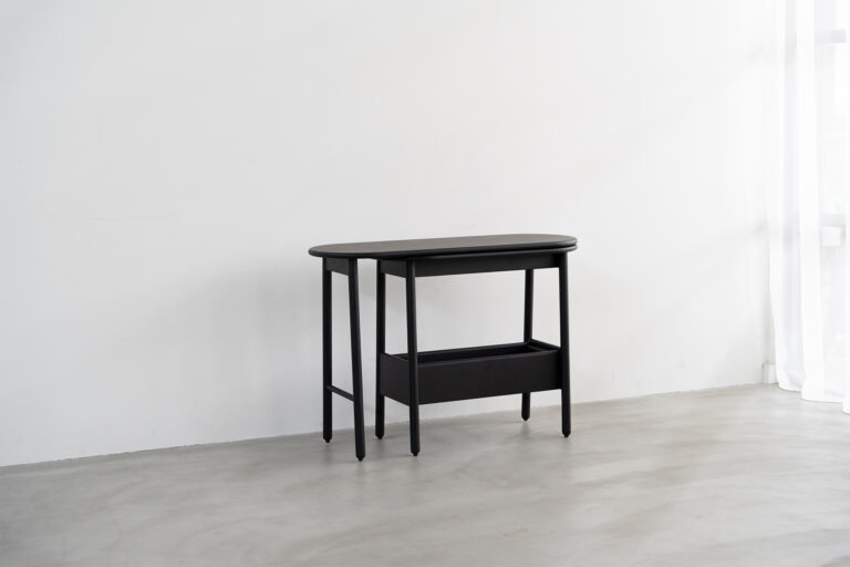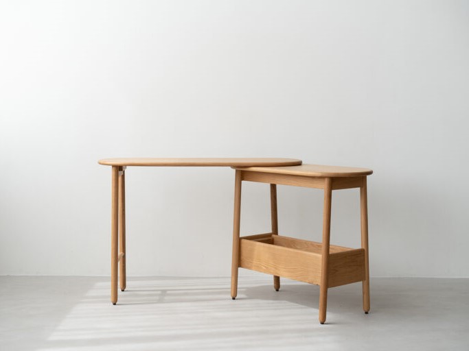 丸く削り出した無垢天板や脚部が優しい印象の、