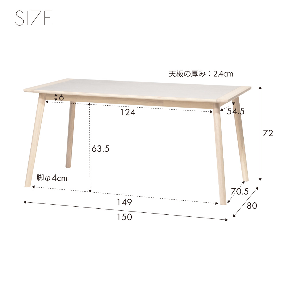 幅150×奥行80×高さ72cm