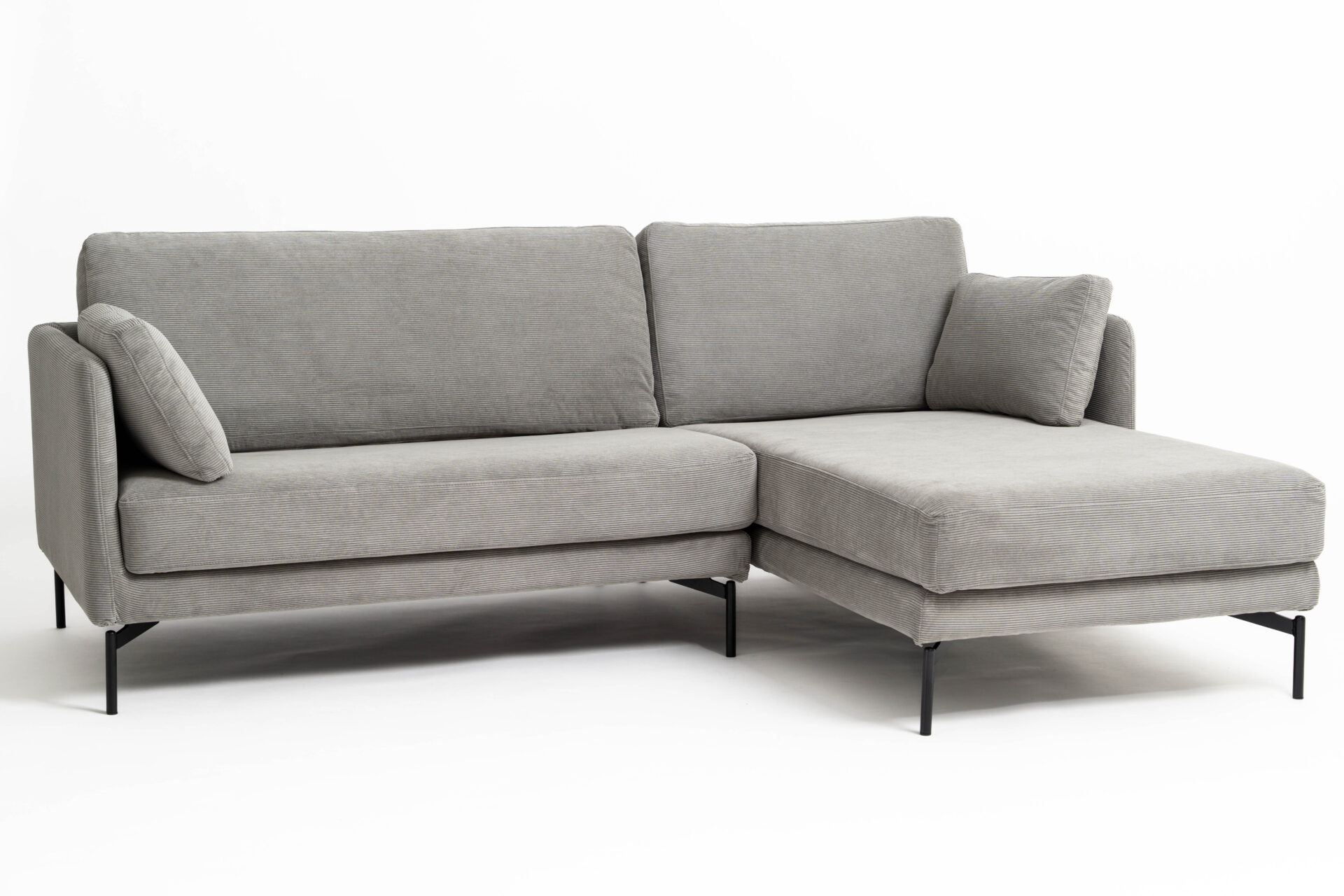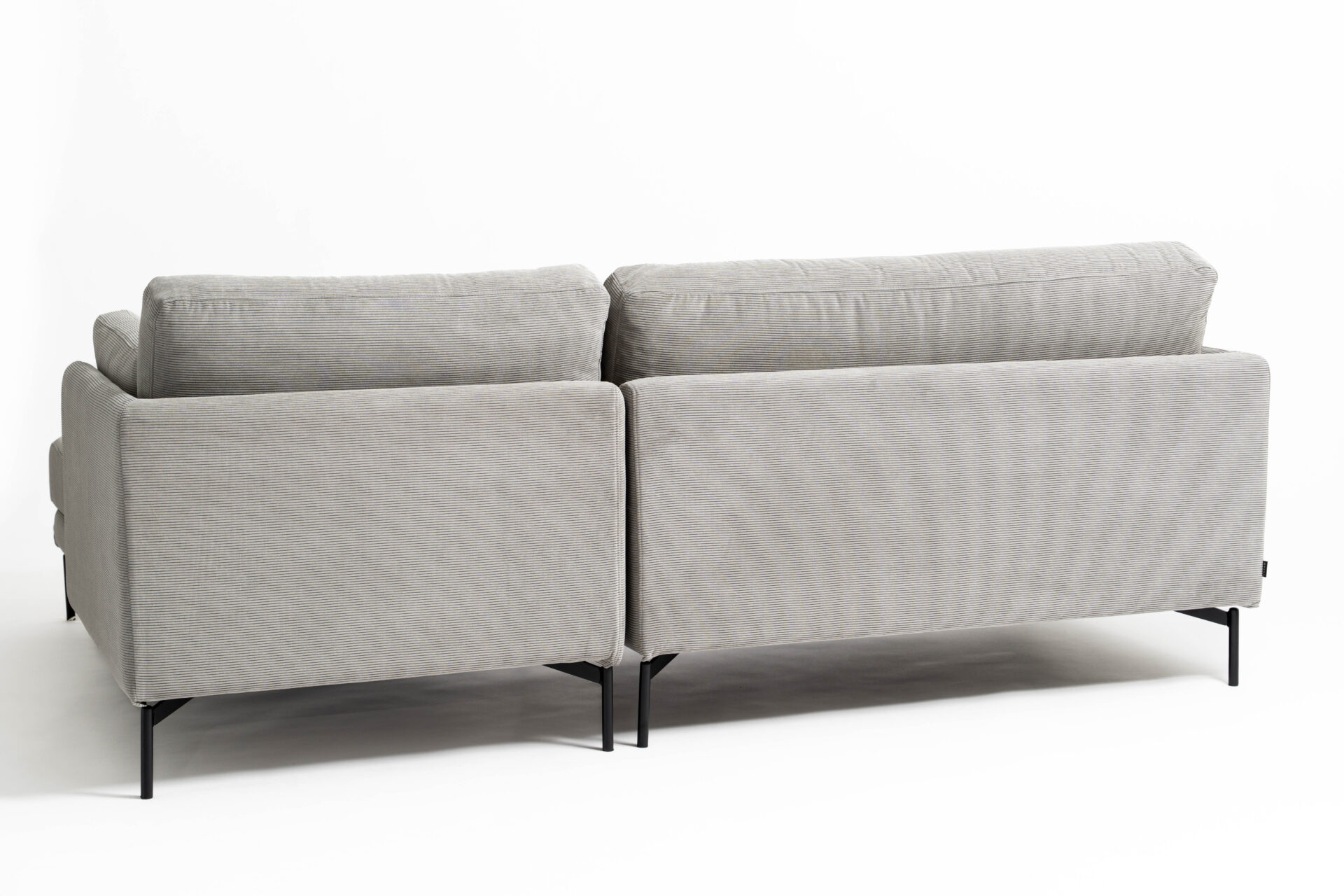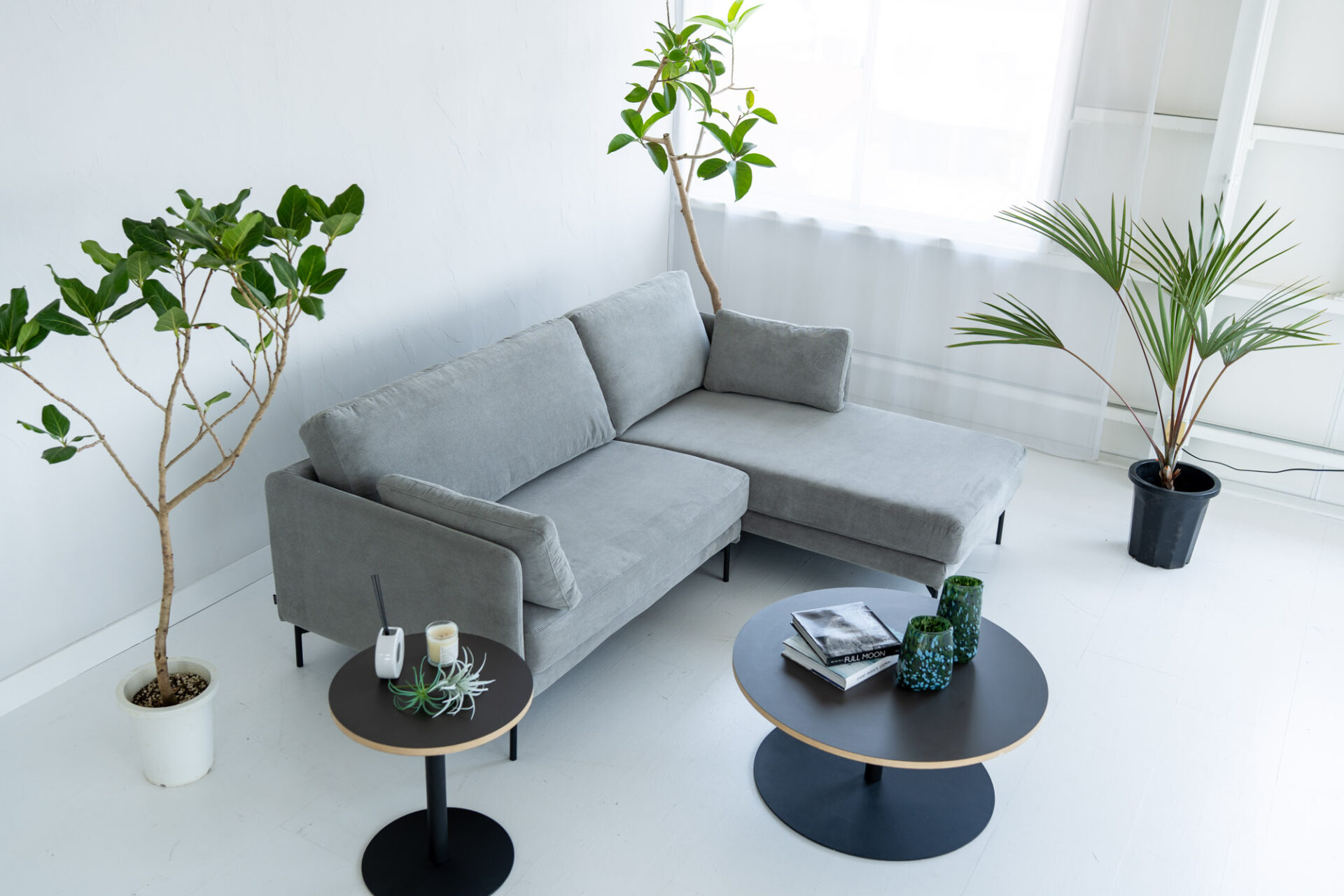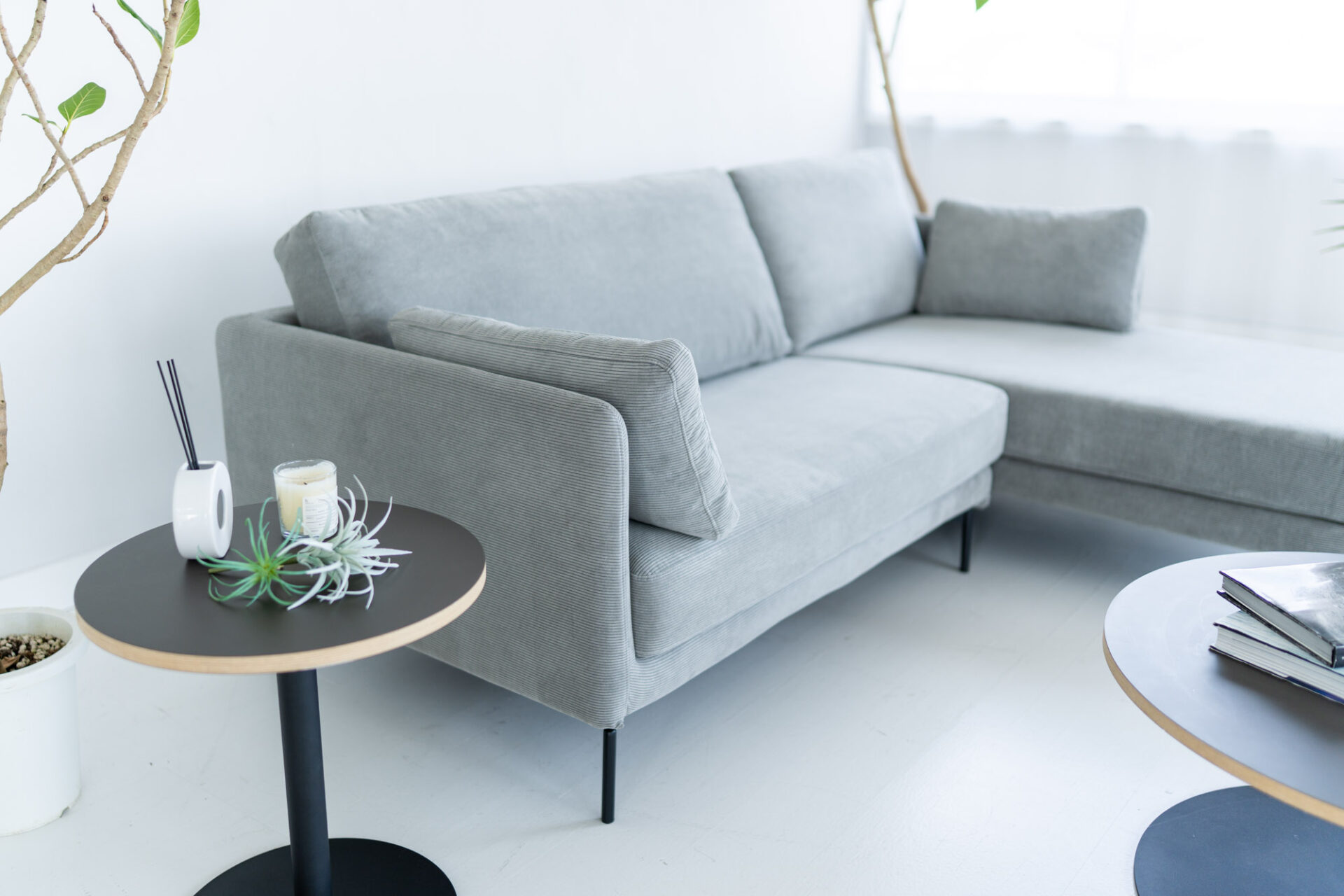 シンプルでクリーンな印象の本体とマットブラックの金属脚のバランスが美しいカウチソファです。
