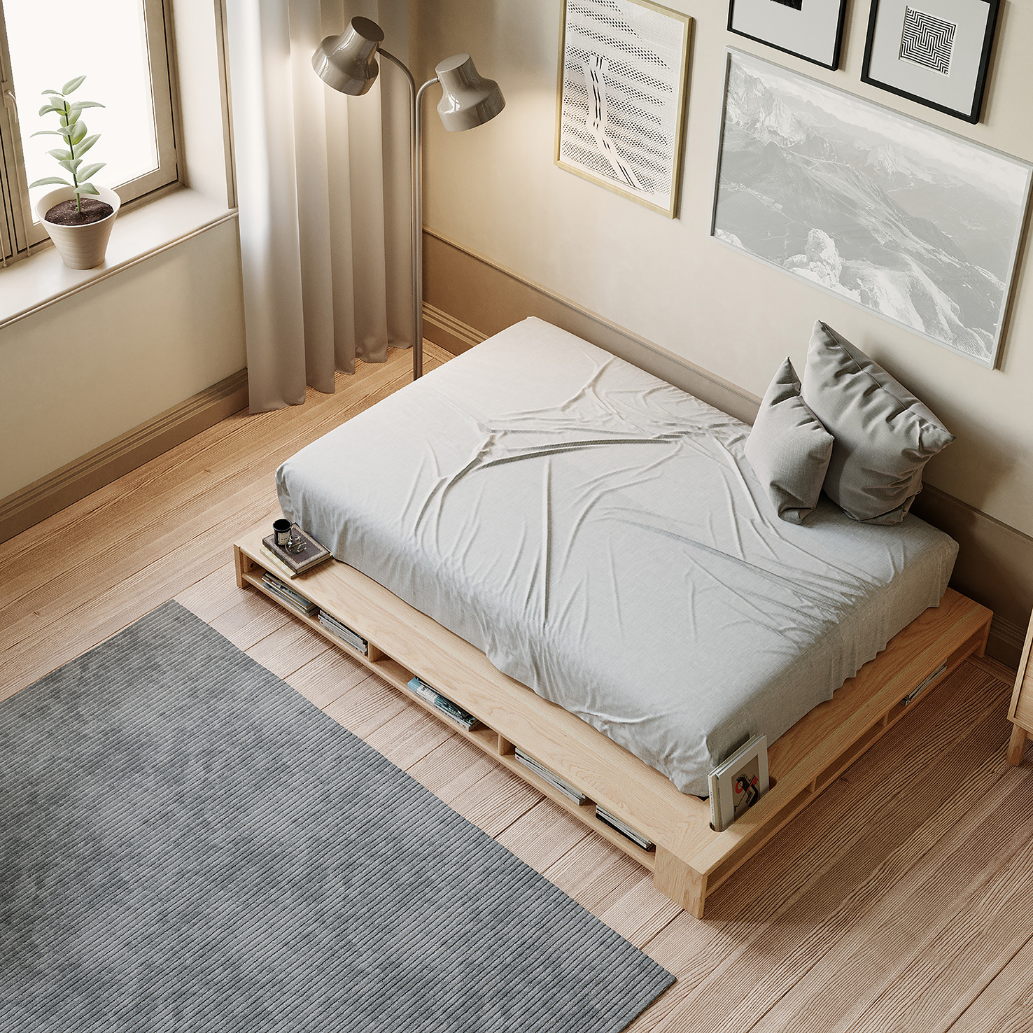 組み立てを終えたばかりのベッドは、木の香りをふんわりと放ちながら寝室の中央に鎮座する。