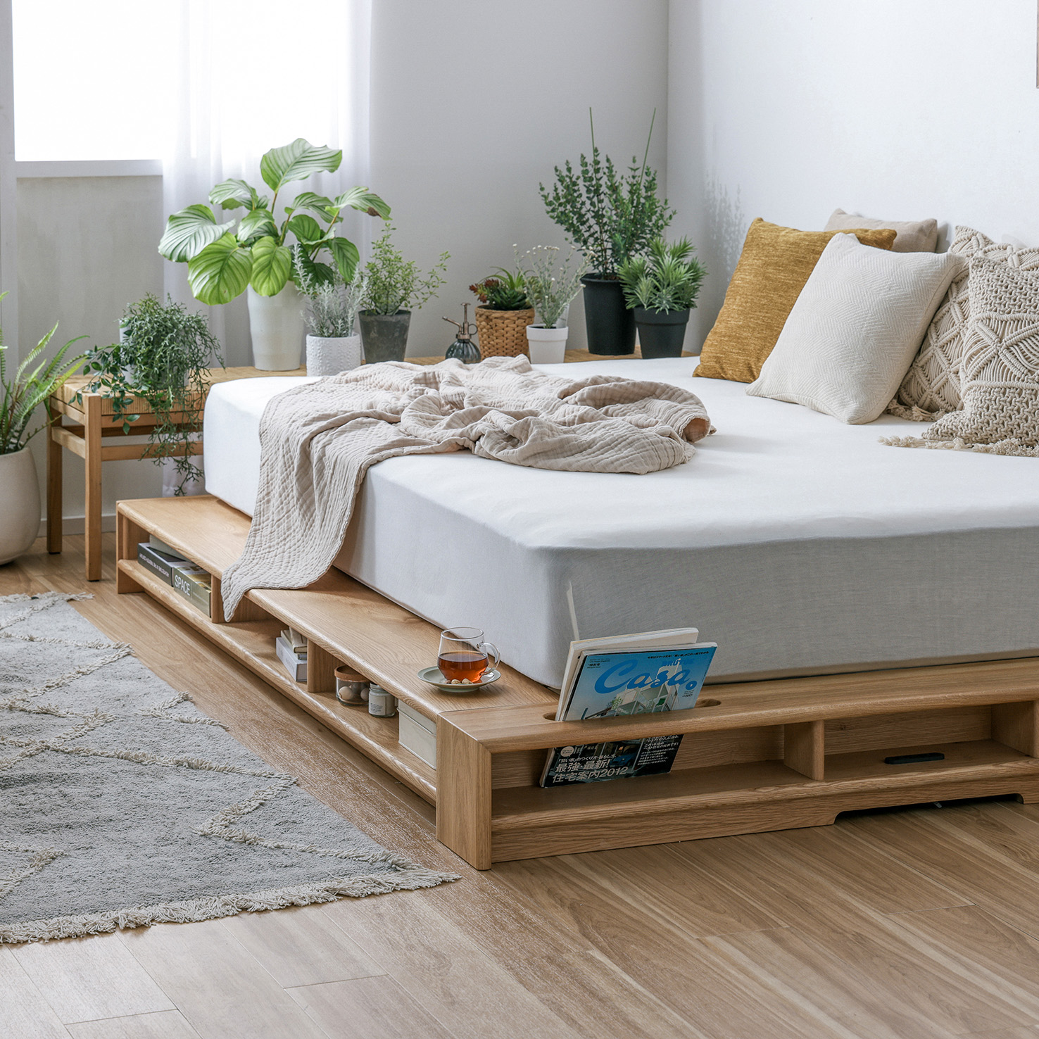 サイドフレームの収納スペースは幅22.5cm設けており、1サイズ大きいマットレスまで乗せ換えが可能。