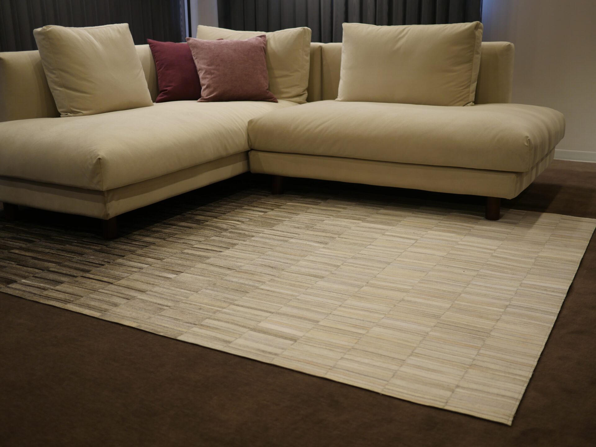 このラグは、言葉のいらない時間にそっと寄り添う、夫婦の夜の記憶を包む場所。
