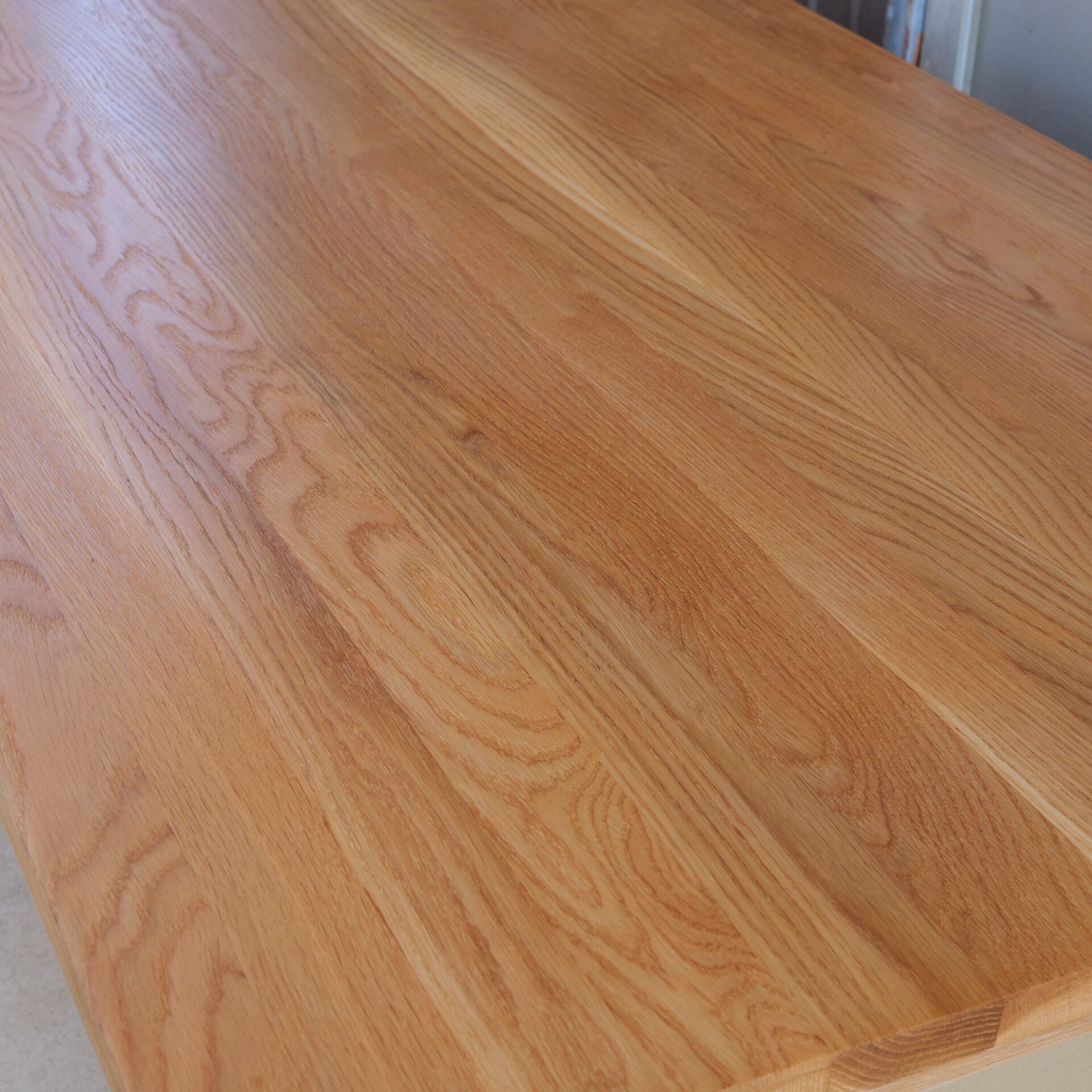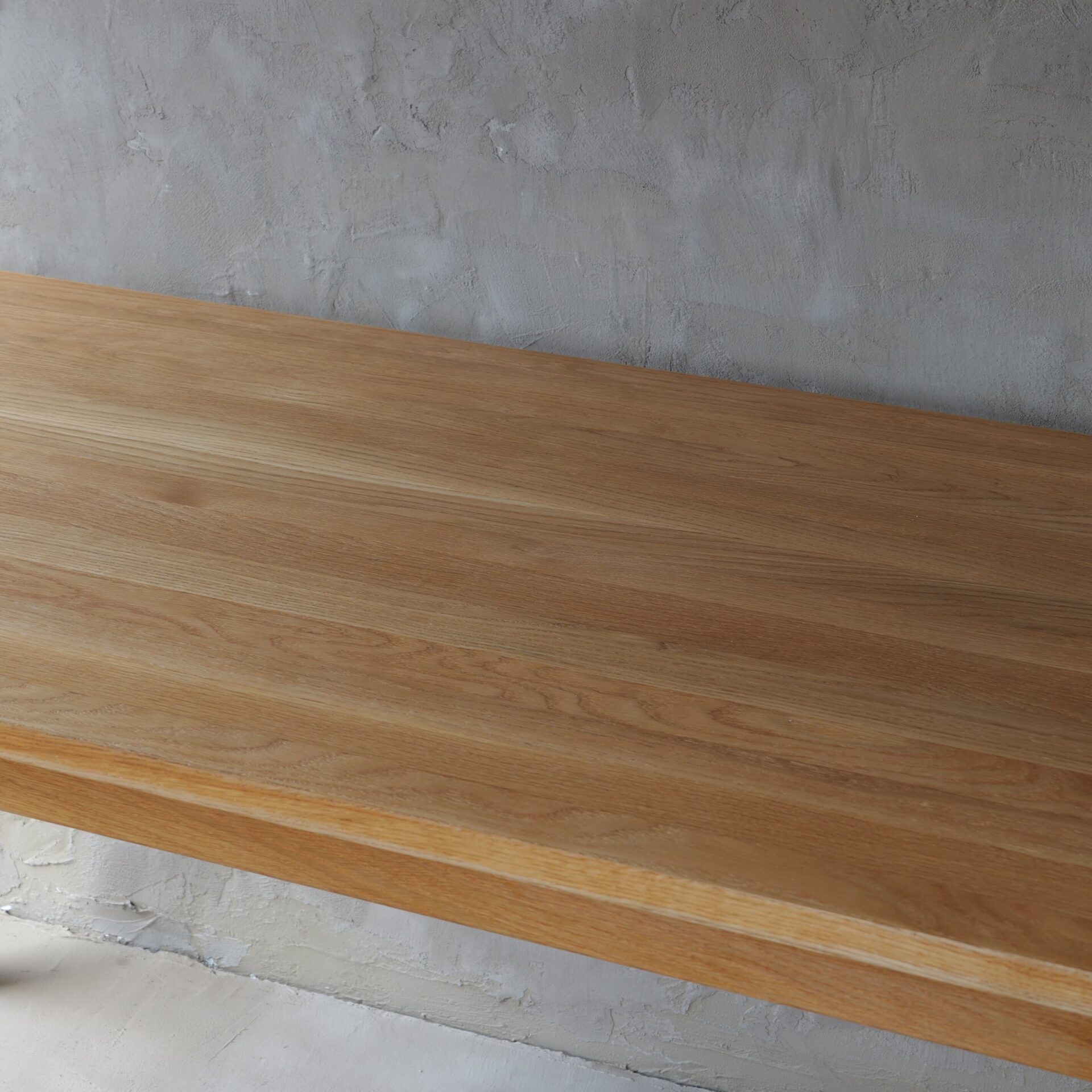 本品は幅の広い無垢を贅沢に繋ぎ合わせているため木目の流れが穏やかで、面で見たときの落ち着きや高級感が大きな魅力です