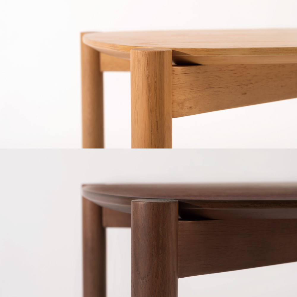 脚が天板より外側に設置された形状がすこし個性的で、他にないデザインに仕上げました。