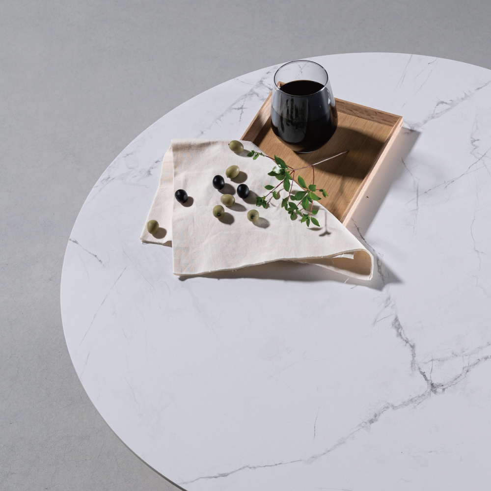 白い大理石調の表情は、まるで時間をゆったりと映し出すキャンバスのよう。