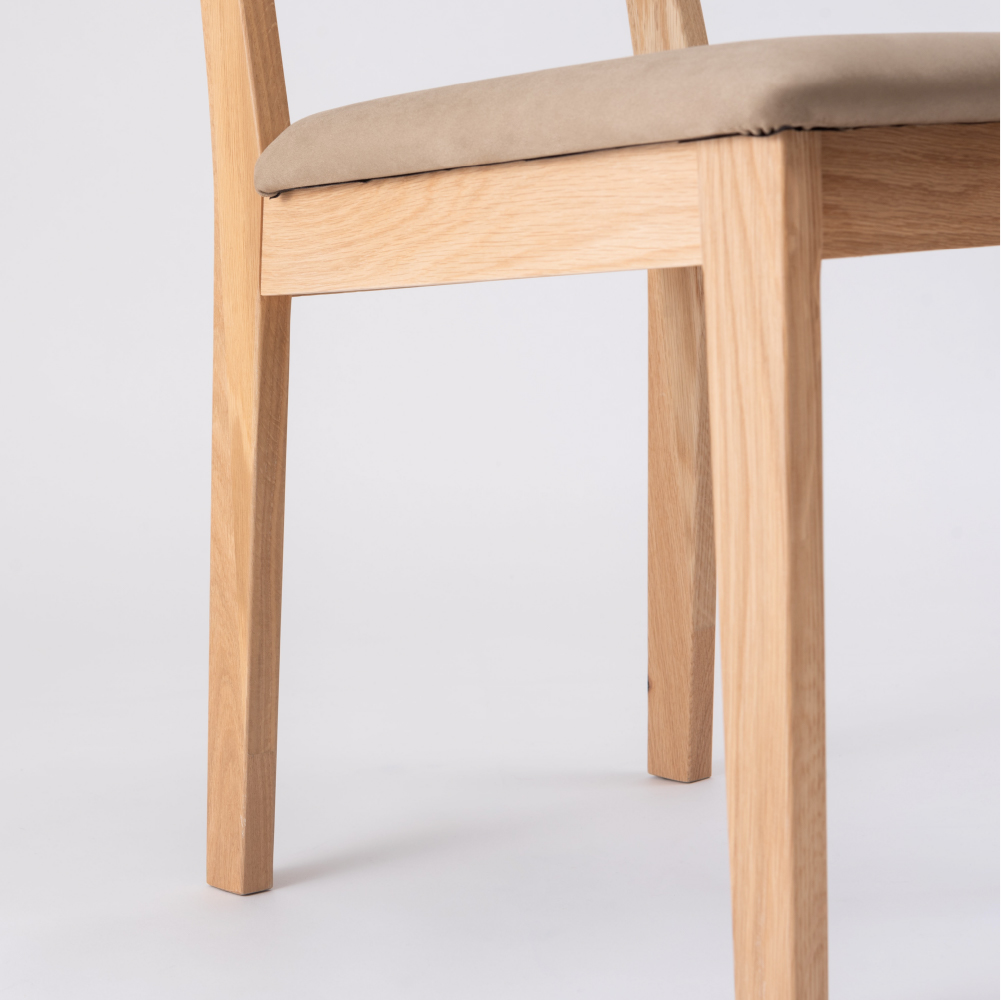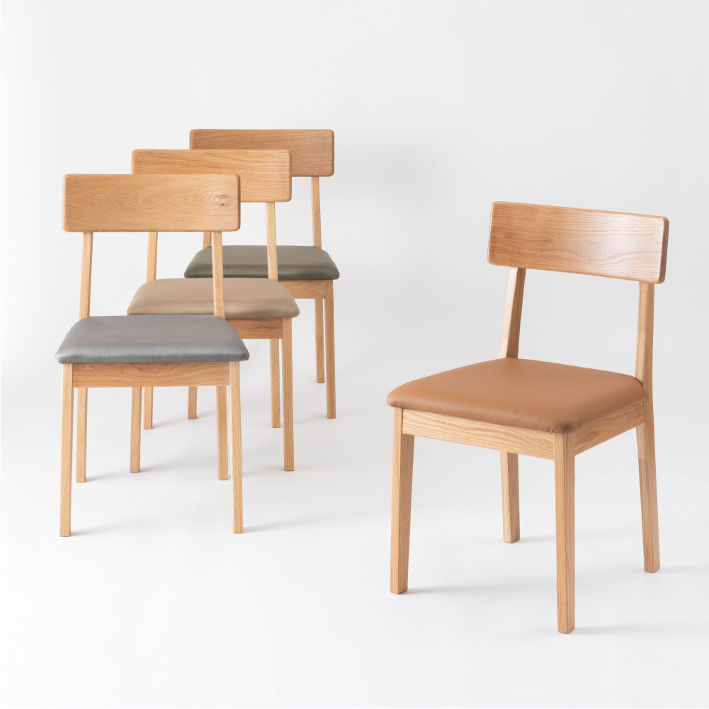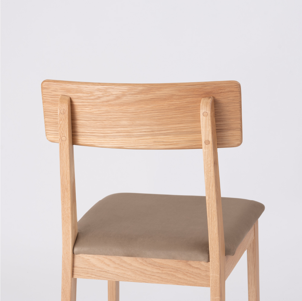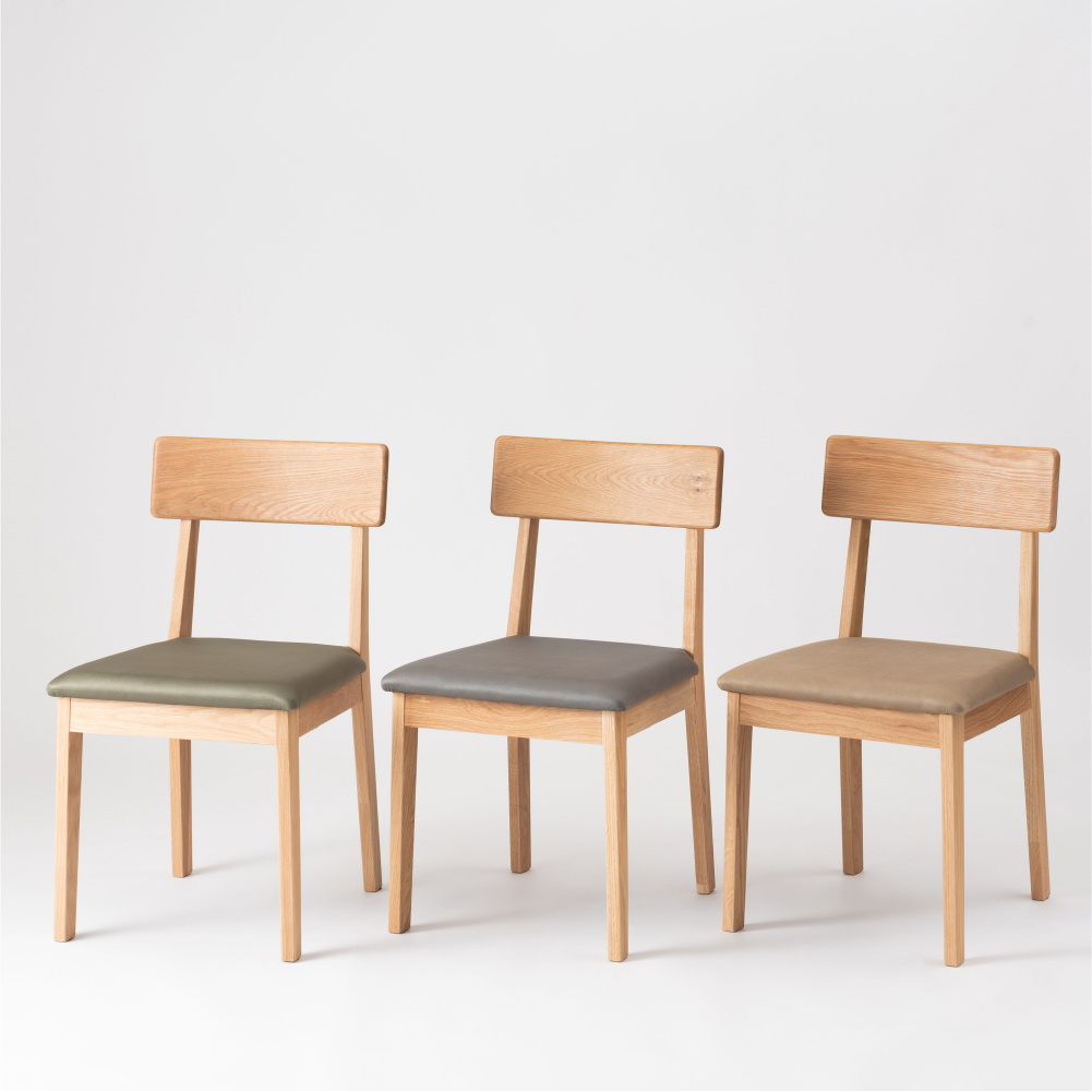 シンプルなフレームデザインだからこそ、使用するオークや生地の表情が際立つチェアに仕上げました。
