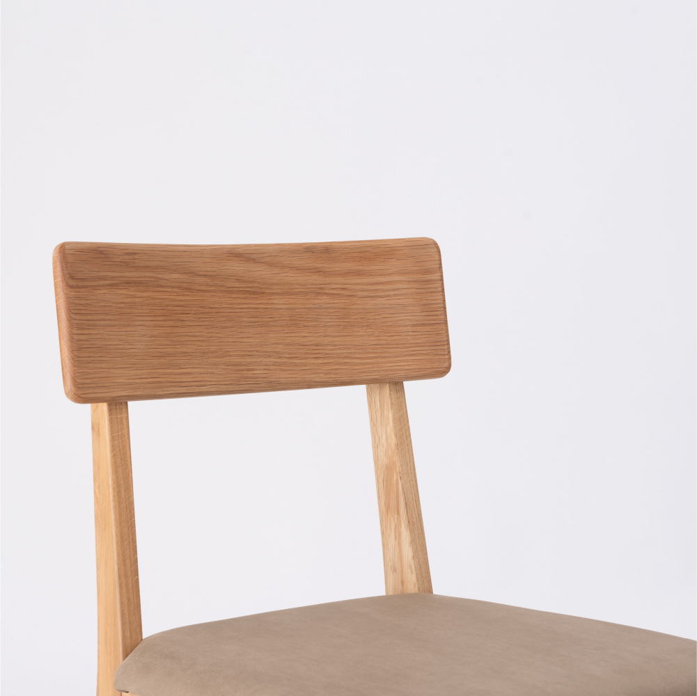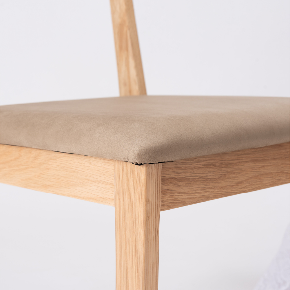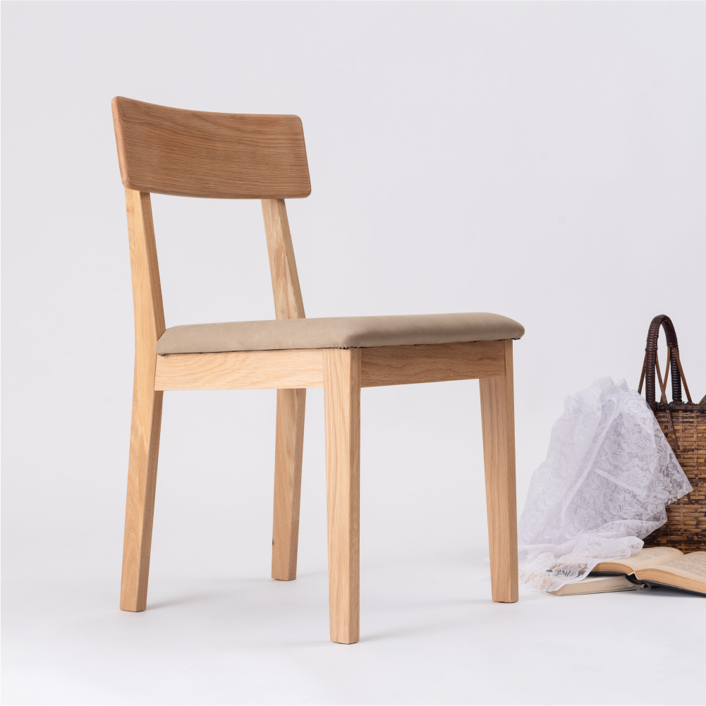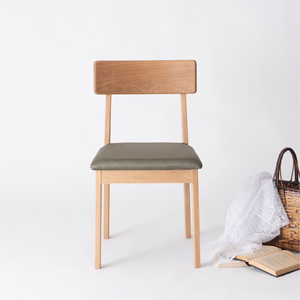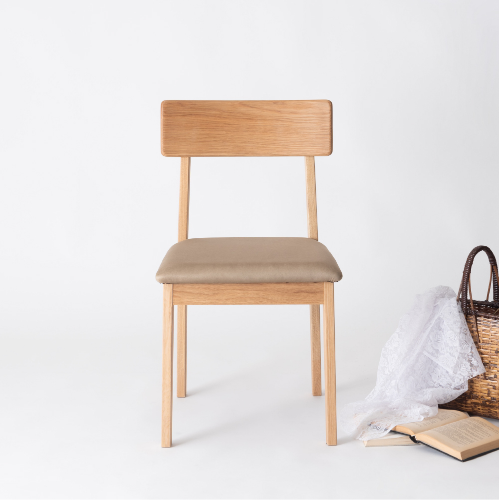 シンプルなフレームデザインだからこそ、使用するオークや生地の表情が際立つチェアに仕上げました。