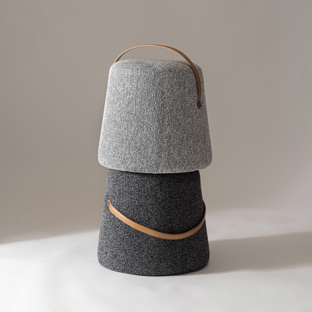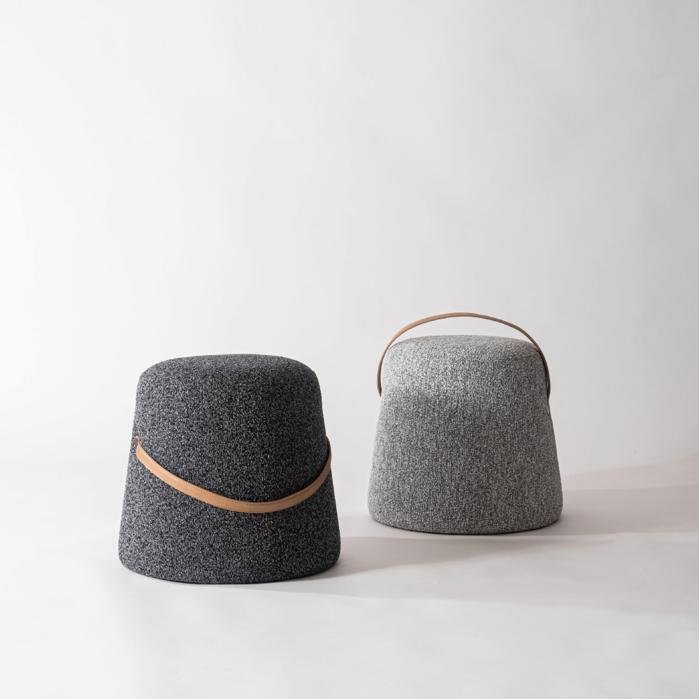 立体感のある混色生地を使用した、丸みを帯びたフォルムが特徴的なスツール。